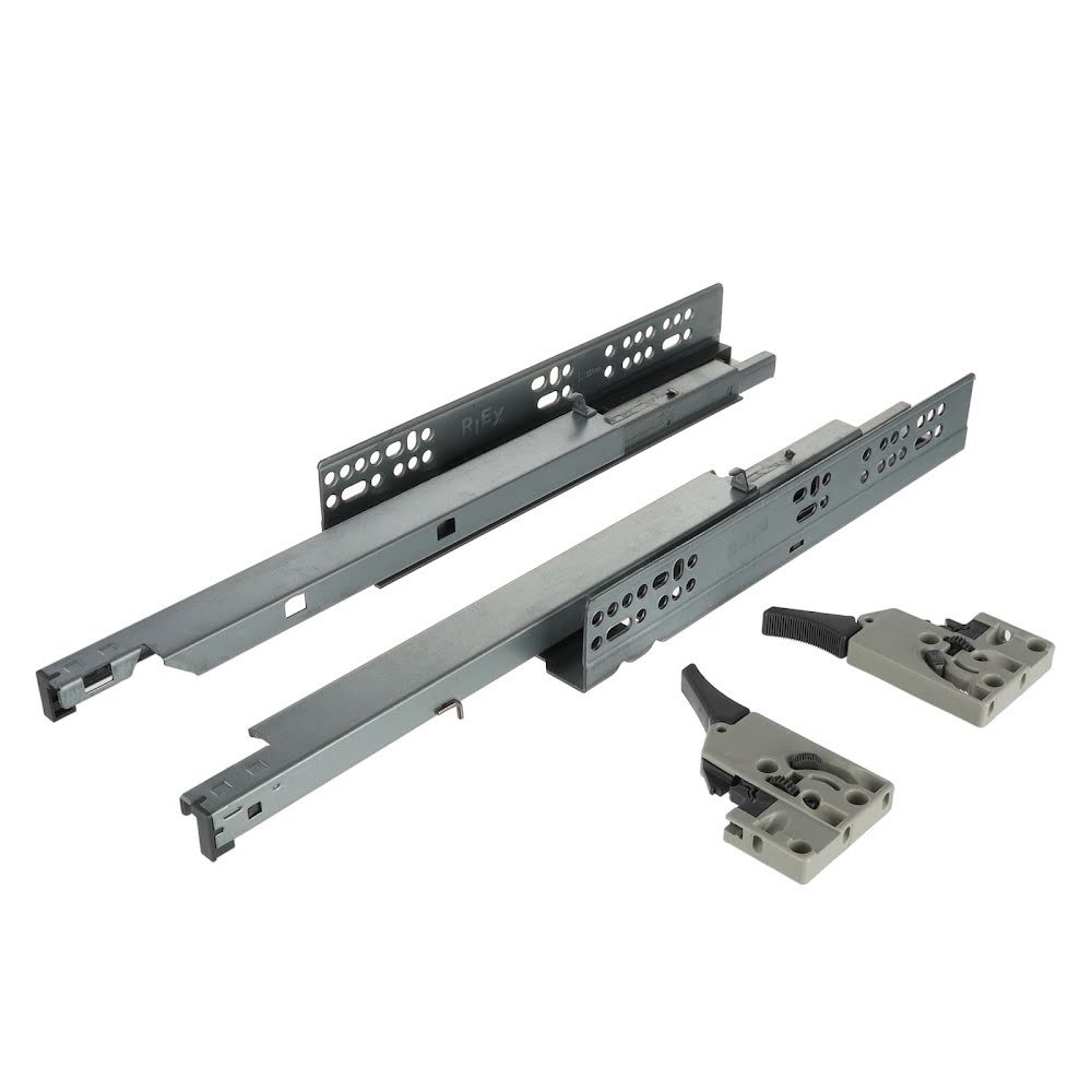 Rejtett fióksín teljes fiókkávás fiókokhoz, alulról rögzíthető, fogantyú nélküli nyitáshoz. Teljes terhelhetősége a fióksín saját tömegével együtt maximum 25 kg, mely terhelésnél éveken át megőrzi nagyon jó tartósságát. Teljes kihúzású, azaz a kihúzás hossza ugyanaz, mint a fióksín névleges hosszúsága. A sín konzollal rögzíthető, amely lehetővé teszi a fiókelő függőleges (fel-le) és vízszintes (bal-jobb) állítását.